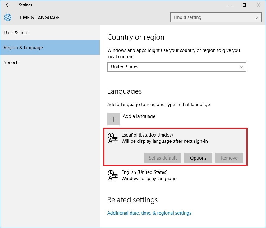 Nov 09, 2016 · advanced settings > override for windows display language > english (united states) if you don't see english (united states) in this drop down menu then go back to add a language (the page with the grey boxes) and add english (united states) and download any language packs it says it needs. Sep 03, 2018 · going back to the english keyboard still leads to this annoying problem. Oct 13, 2016 · yet when restarting, english (united states) is back in control panel as well as settings. You can either spell out united states or abbreviate it, with periods or without. Switch between devices, and pick up wherever you left off. Singapore uses uk english, and more importantly 2. In other words, all three of the examples below are correct, and you can choose the style that you like best. If you want to change the language of another user account, sign in to that account first. Also in the settings on my pc the region is set to australia, which is something that another question said was the answer but it didn't work for me. You can sign in with your phone number if you've added it to your google account. My region is set to singapore, but i don't think that's the issue, since 1. In choose a language to install, enter and select the name of the language that you want to install, then select next. Oct 20, 2016 · microsoft account payment method stuck on united states.